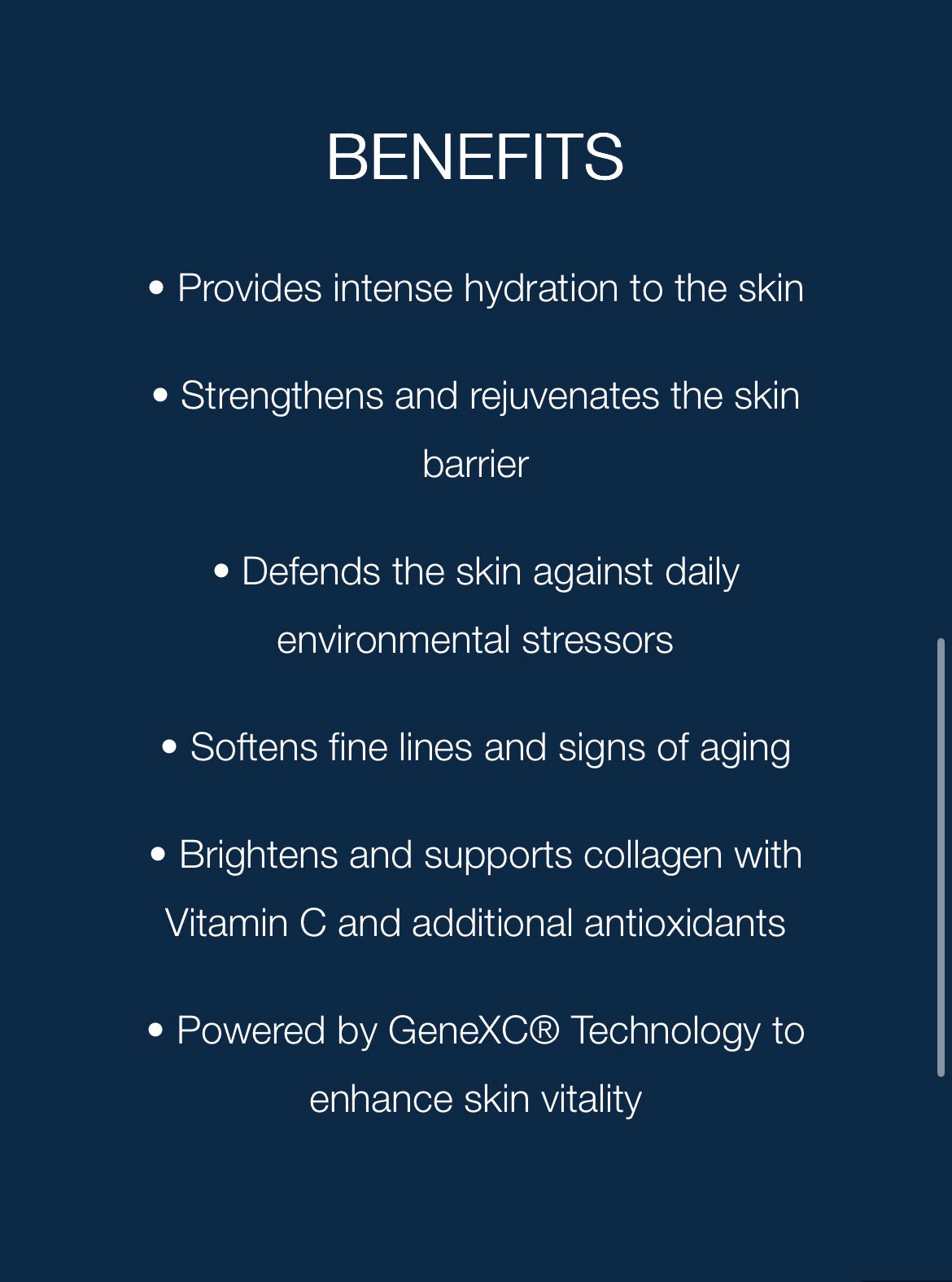 This high performing 3-in-1 formula helps to treat visible signs of aging, defends against daily environmental stressors, and delivers deep, lasting hydration that renews the skin. Powered by GeneXC® Technology, this advanced formulation combines an exclusive potent blend of Vitamin C and Extremozymes® to visibly brighten and protect the skin. Exosomes and a powerful peptide aid in visibly improving firmness, elasticity and smoothing fine lines while proactively defending from further signs of aging.